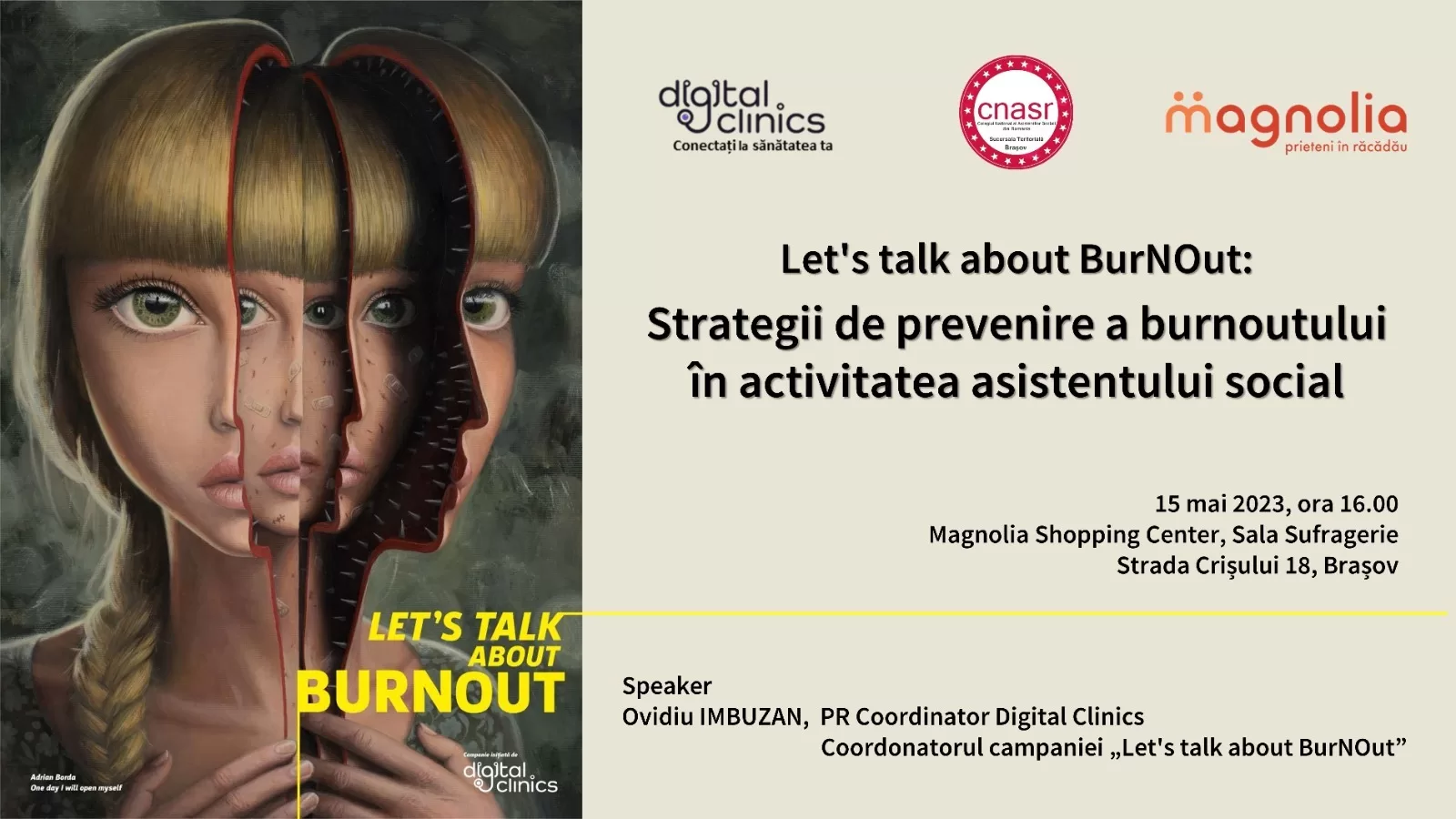 Într-un efort de a aduce în prim-plan nevoile și provocările cu care se confruntă asistenții sociali în activitatea lor, a avut loc recent seminarul intitulat "Let's talk about BurNOut - Strategii de prevenire a burnoutului în activitatea asistentului social". Desfășurat la Magnolia Shopping Center din Brașov, acest eveniment a fost organizat de platforma de telemedicină Digital Clinics în parteneriat cu Colegiul Național al Asistenților Sociali din România, sucursala teritorială Brașov.